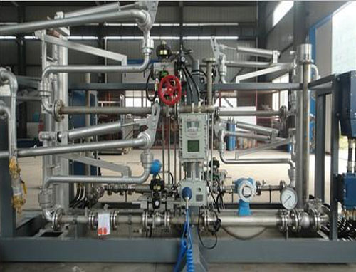 油品定量裝車橇裝組是指將每一個裝車鶴位內(nèi)的儀表和設(shè)備集成在一個專用的框架結(jié)構(gòu)內(nèi),儀表和設(shè)備包括裝車鶴管、流量計(jì)、防溢油靜電報(bào)警控制器、壓力變送器、裝車流量控制閥、緊急切斷閥,裝車泵、批量控制器等, 只預(yù)留工藝連接口和控制電源和通訊接口,這個整體集成部分稱為裝車橇。與傳統(tǒng)的裝車控制系統(tǒng)就地組裝比較,裝車橇可以節(jié)省現(xiàn)場設(shè)計(jì)和現(xiàn)場施工量,縮短項(xiàng)目工期,提高裝車控制系統(tǒng)的質(zhì)量。